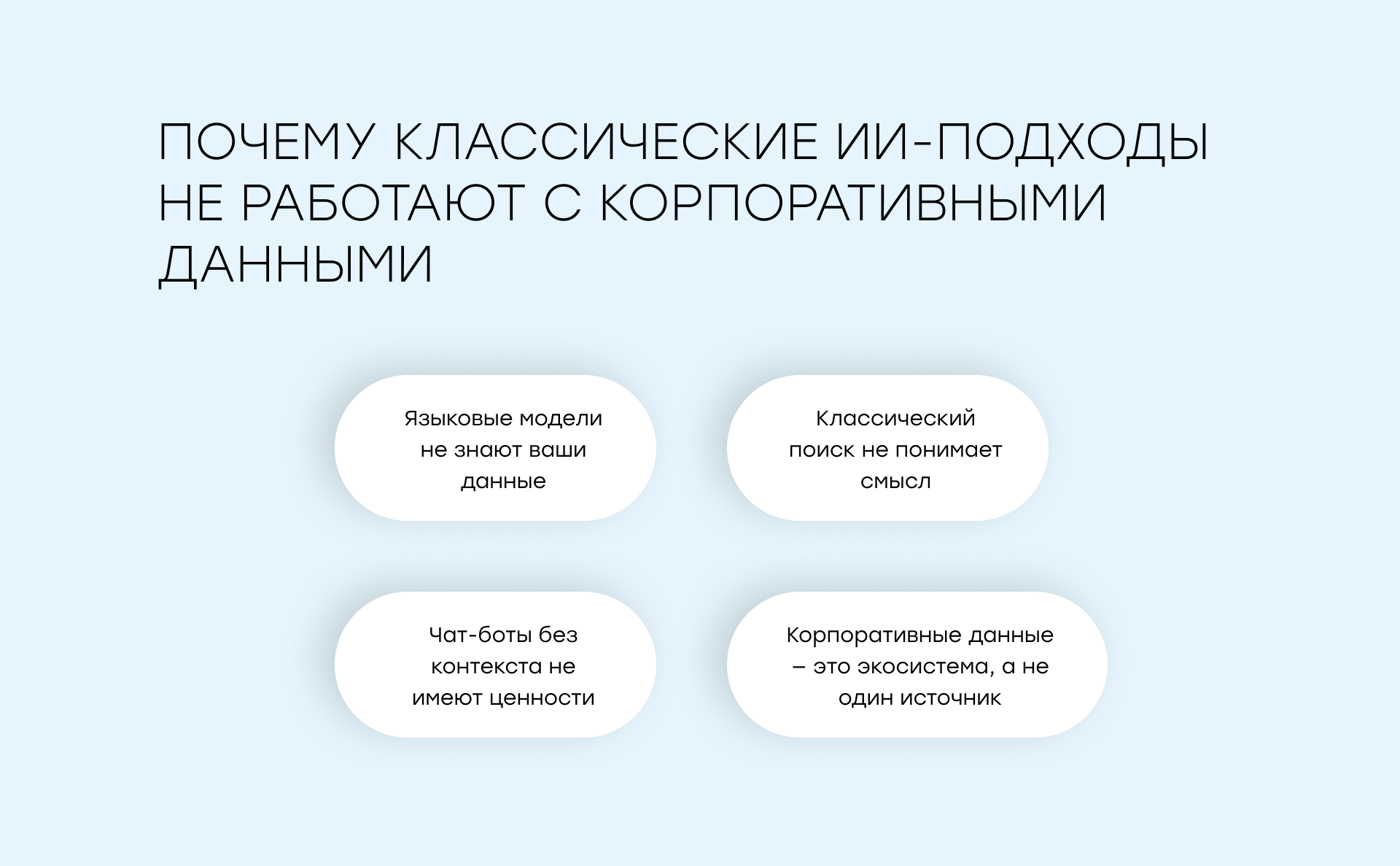 Но на практике быстро становится понятно – ИИ сам по себе не решает проблему разрозненных корпоративных данных.