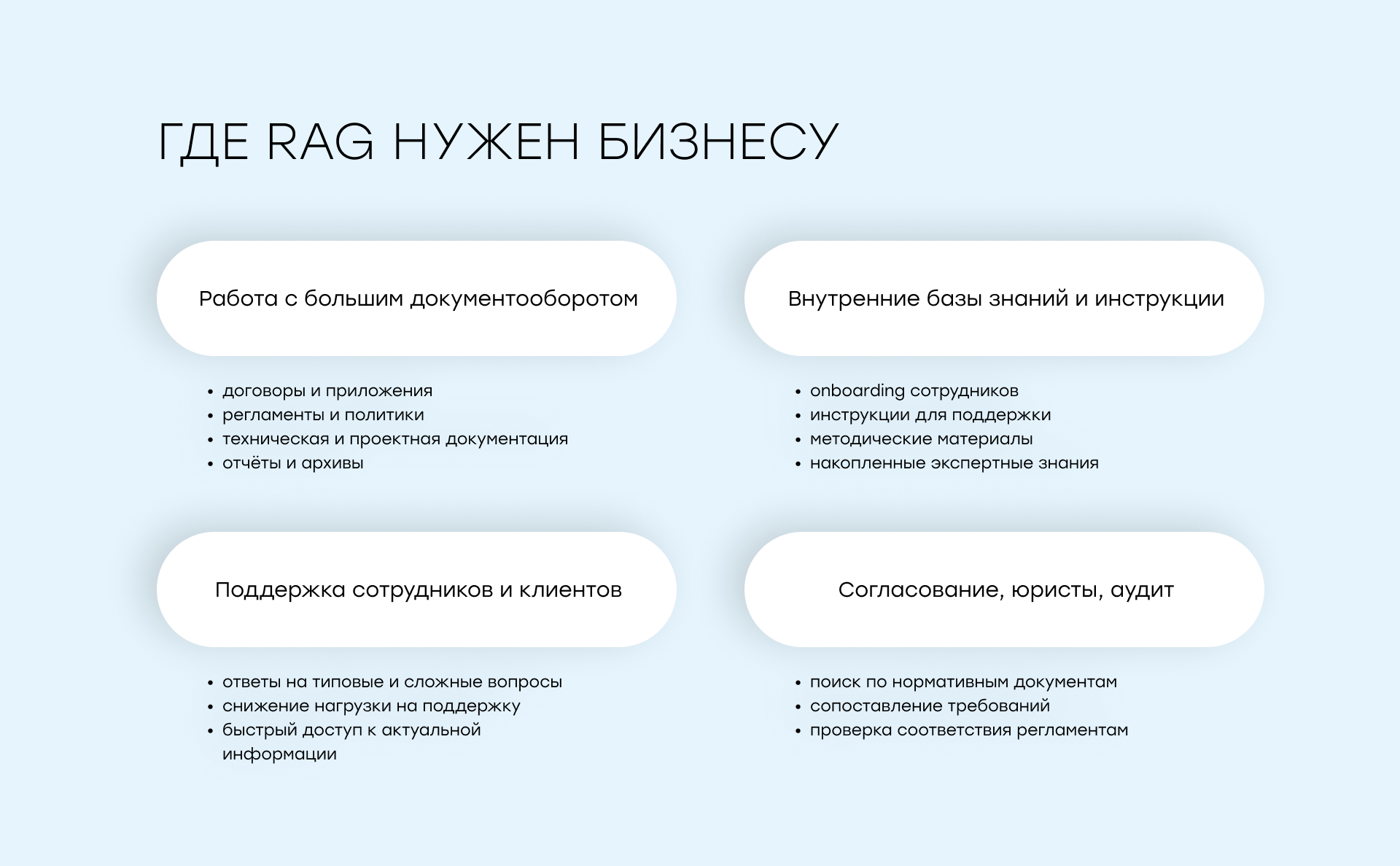 Договоры, регламенты, инструкции, переписка, отчёты, презентации, базы знаний — всё это распределено между разными системами, форматами и командами.