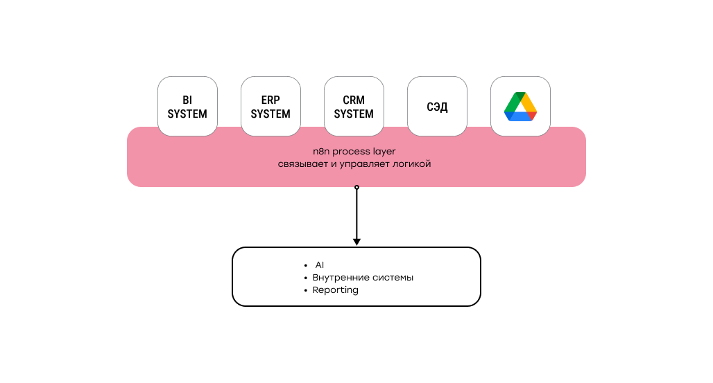 Важно и то, что n8n в этом кейсе выступает не как временное решение, а как устойчивая часть архитектуры. Он позволяет развивать процессы по мере роста бизнеса, не пересобирая систему целиком и не создавая новых узких мест.
