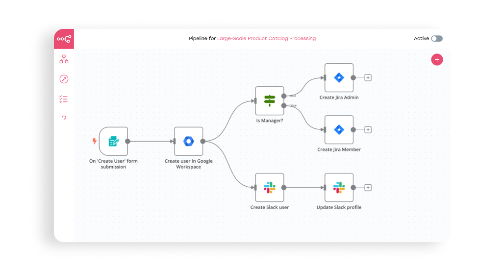 Для крупного бизнеса это особенно важно, ведь данные почти всегда проходят через несколько систем, каждая из которых отвечает за свою часть. n8n позволяет описать эту цепочку как единый процесс, не привязываясь к конкретному вендору или стеку, и при этом спокойно работать в on-premises или гибридной инфраструктуре.