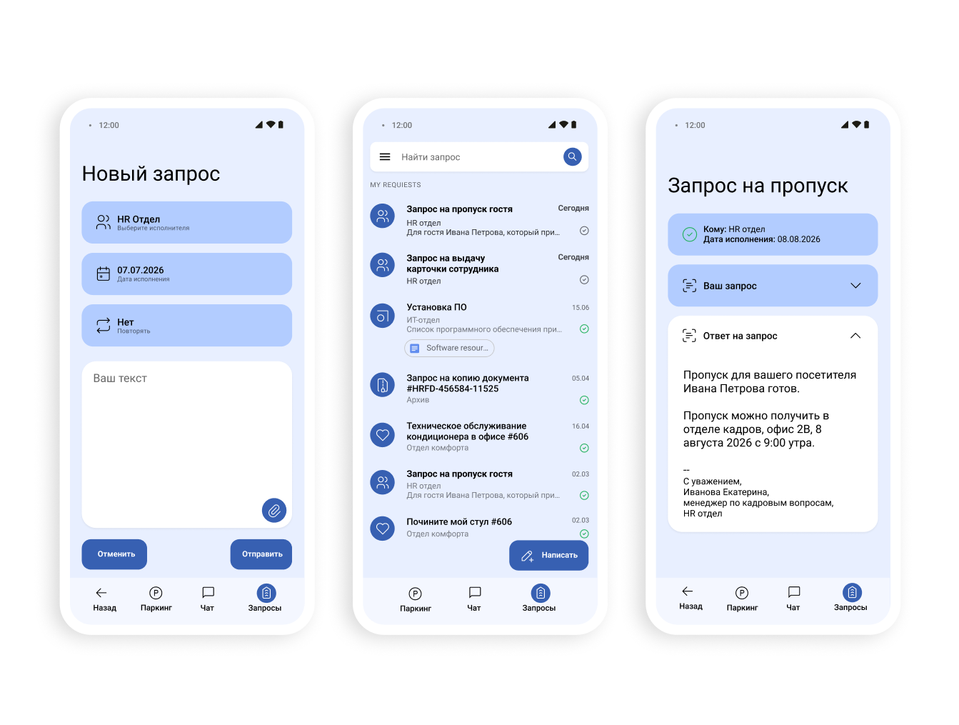 Оба приложения работают, пользователи ежедневно отправляют заявки на пропуски и парковки.