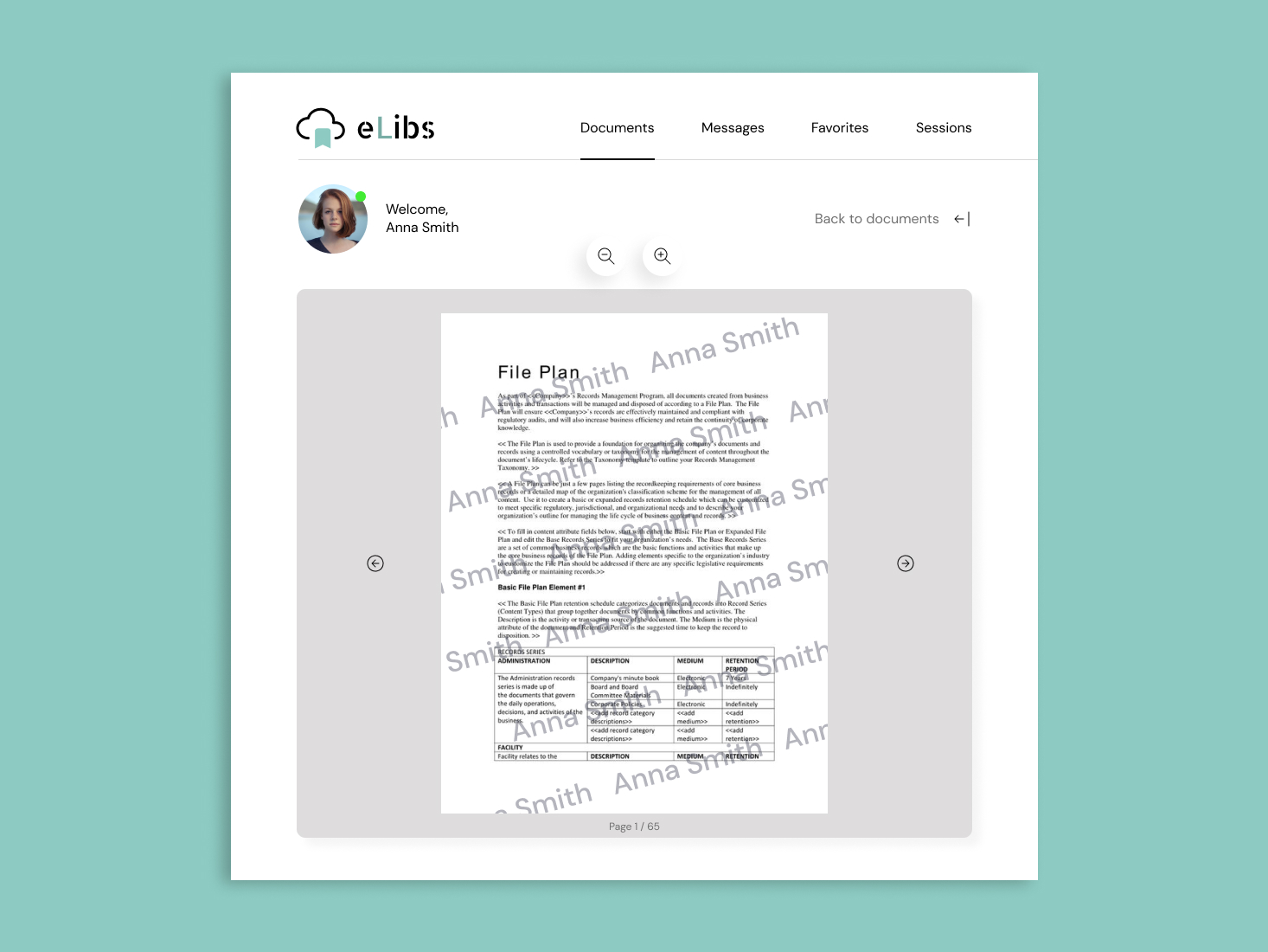 Документы загружаются в систему в формате PDF с возможностью поиска, а затем разделяются на страницы для удобства просмотра. Выделение и копирование текста отключены, а каждый документ защищен водяными знаками с именем пользователя, назначенным каждому сотруднику. Таким образом, в случае утечки документа, виновный может быть легко идентифицирован. Доступ к системе осуществляется только из локальной сети, что обеспечивает дополнительную безопасность.